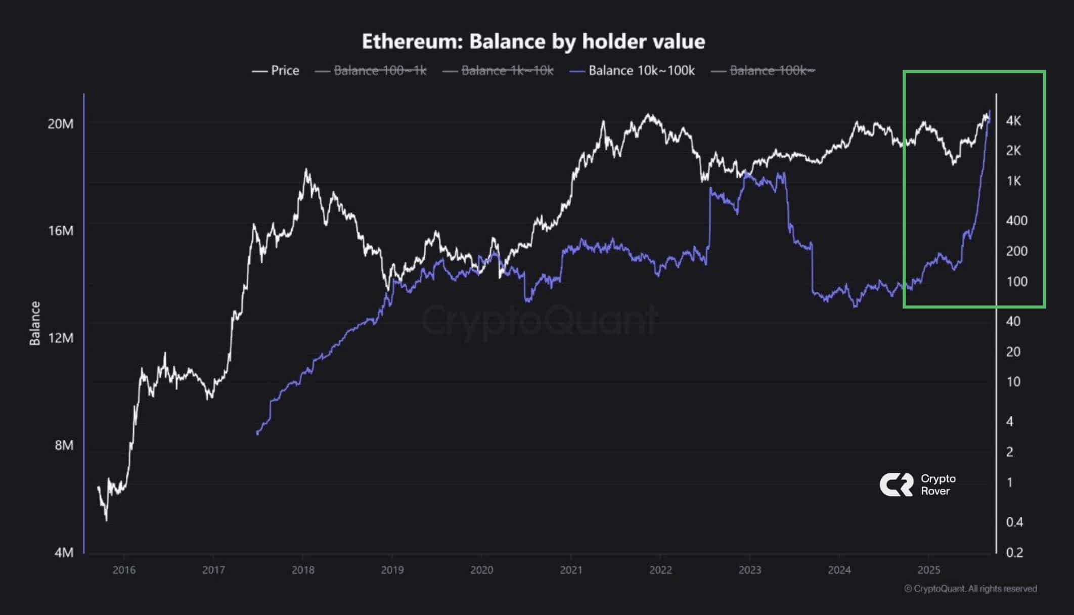 Wallets holding between 10K-100K ETH are aggressively stacking up too, with balances shooting to new highs. The confidence in Ethereum is hard to miss.