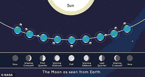 The Sun always illuminates half of the Moon while the other half remains dark, but how much we are able to see of that illuminated half changes as the Moon travels through its orbit.