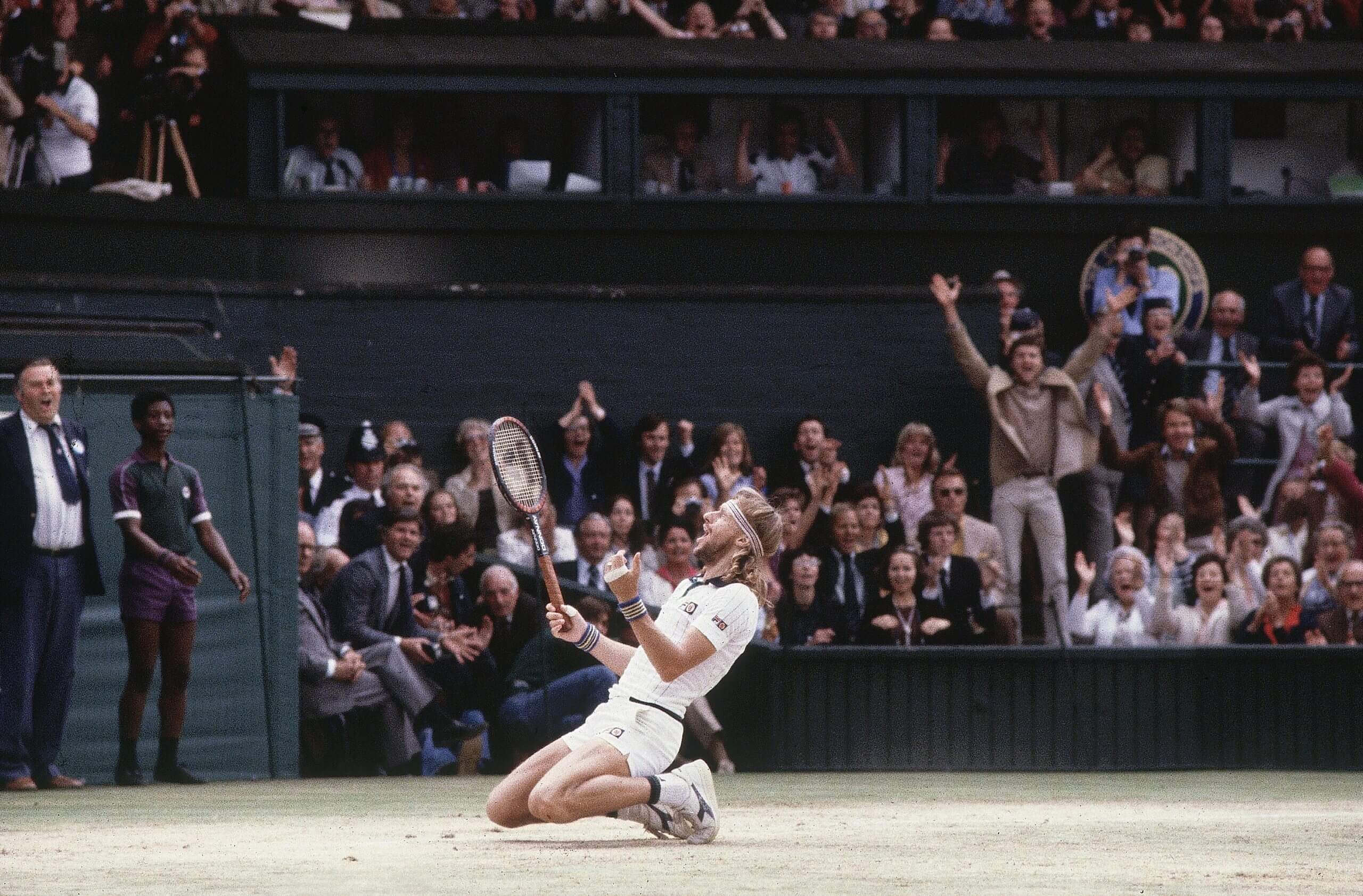 Borg celebrates after beating John McEnroe in the 1980 Wimbledon final. (Walter Iooss Jr./Sports Illustrated via Getty Images)