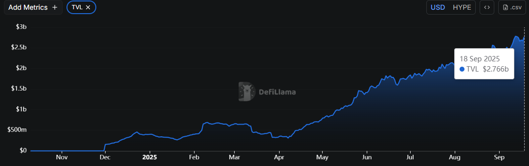 On-chain, HYPE’s launch aligned with its TVL rocketing to a record $2.7 billion, adding nearly $300 million in September alone. To put that into perspective, XRP added just $13 million over the same stretch.