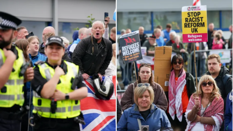 Anti-asylum and anti-racism protesters outside Falkirk’s Cladhan Hotel (Photo: Jeff J Mitchell/Getty)