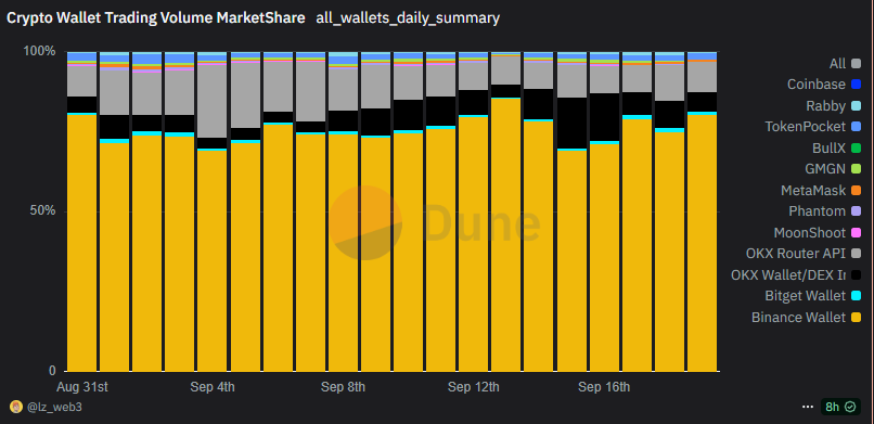 However, in terms of overall crypto wallet trading volume, MetaMask ranked fifth, with Binance and OKX wallets leading the segment.