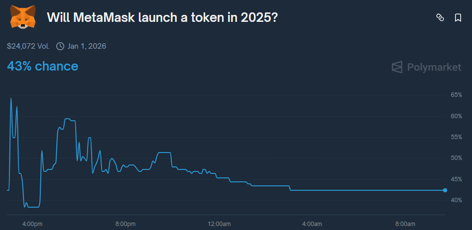 However, the market was pricing a 43% chance of the token being launched by 2025, per Polymarket data.