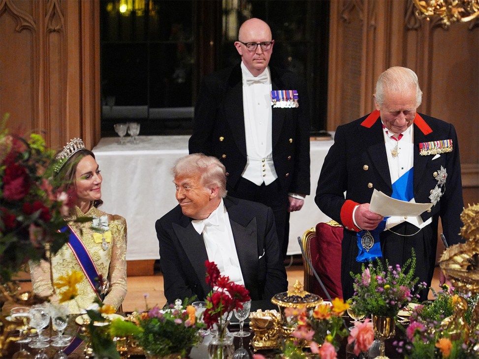 Price is right: Catherine, Princess of Wales, and US president Trump listen as King Charles III delivers his speech during the State Banquet at Windsor Castle (Image: Yui Mok/Getty Images)