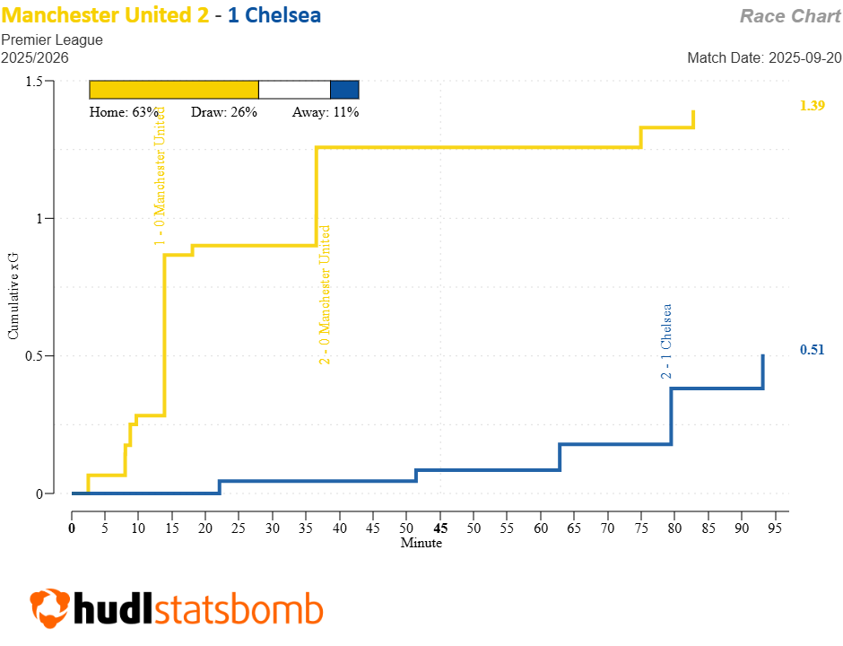 After Casemiro‘s (£5.5m) headed goal, and especially after the Brazilian’s 45th-minute red card, that was kind of it. Sesko went off at the interval, as Ruben Amorim shut up shop with the numerical advantage wiped out. United posed little threat; just two shots after they went 2-0 up.