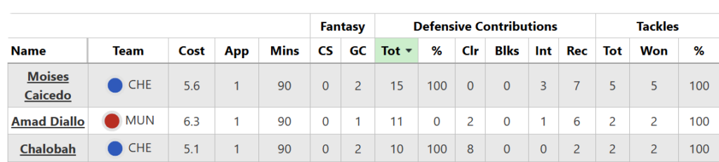 Chalobah incidentally is now joint-top of the FPL defenders’ table. He may also get two more DefCon points; our Opta data has him on 10 contributions in this game, FPL on nine. Let’s see if there is an adjustment to either figure on Sunday.