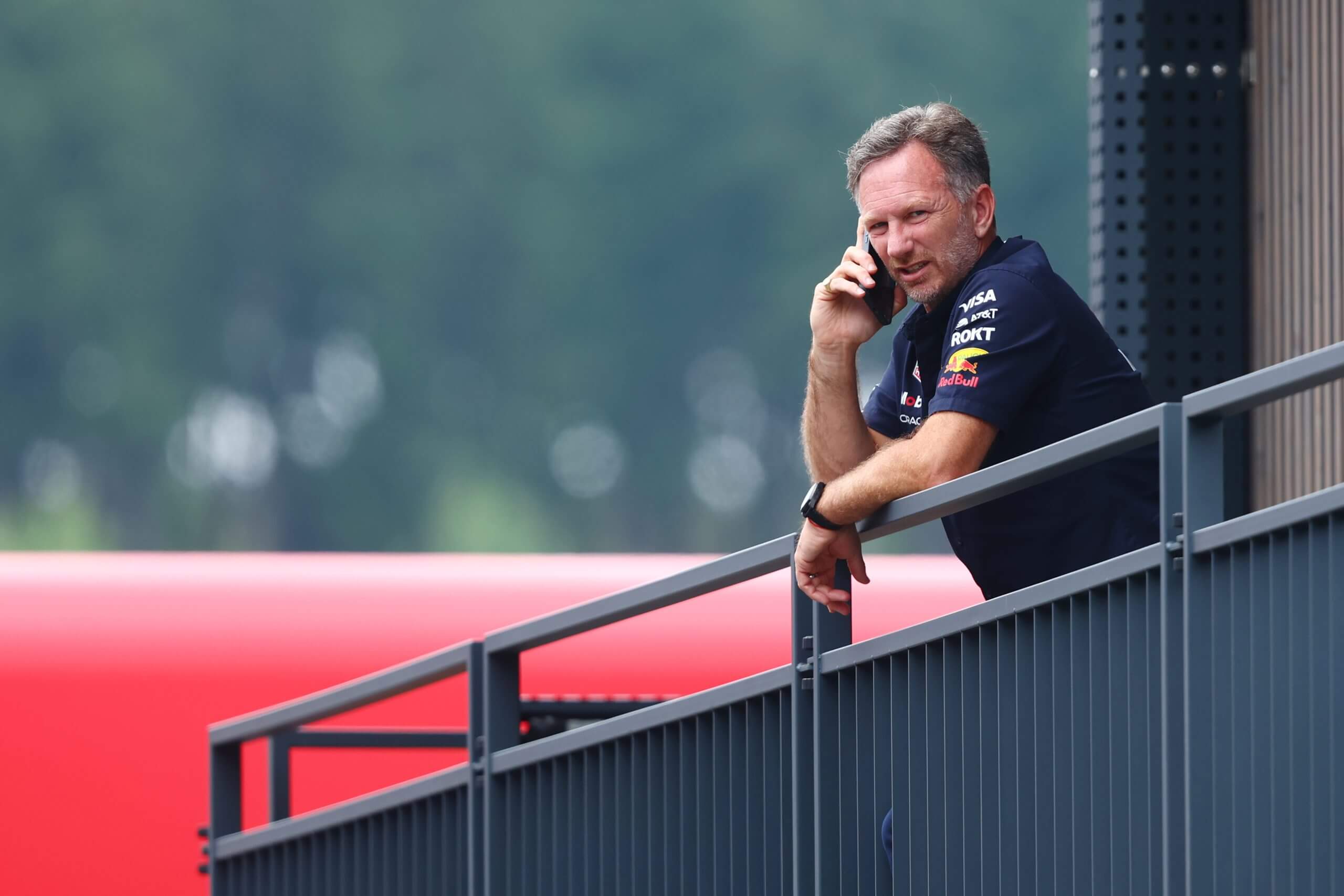 Christian Horner on a phone call in the paddock prior to practice in Austria on June 27 (Joe Portlock / Getty Images)Horner (sort of) leaves Red Bull againExit settlement talks end