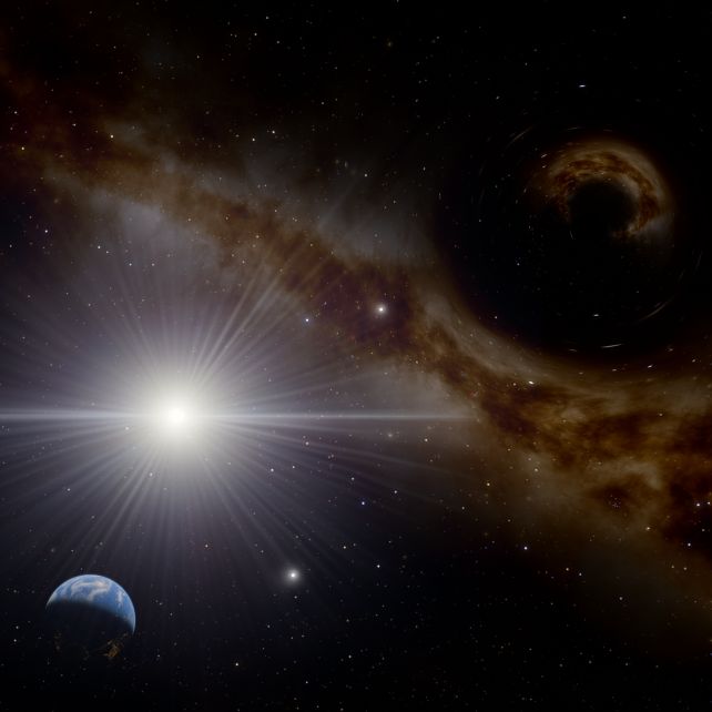 The black hole would have had to explode very close to Earth. (Image by Toby Gleason-Kaiser, using SpaceEngine @ Cosmographic Software LLC)