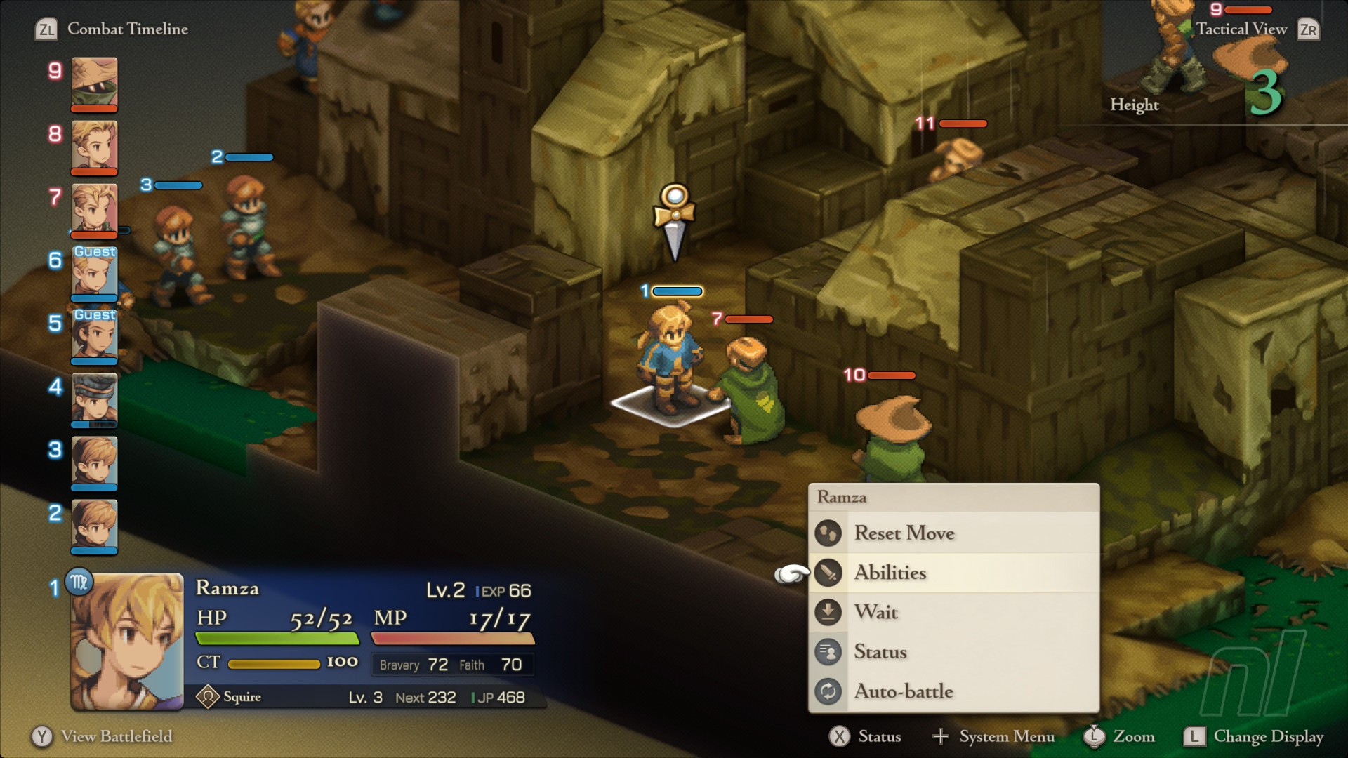 In battle, the meaningful changes continue, with a new tactical top-down view letting you get a read on things at any time without scenery getting in your way (possibly the only thing that ever annoyed me playing the first one). Turn order being highlighted down the left side of the screen is also a huge change-up for the better, as is the ability to reset your turn should you move to the wrong place.