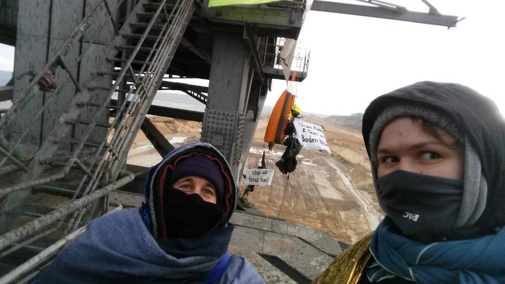 The action is directed against the impending clearing of part of the Hambach Forest to build a marina on the edge of the Hambach open-cast mine. Located between Aachen and Cologne, the Hambach coal mine is the largest in Europe. Run by the mega-corporation RWE, the toxic pit supplies the surrounding weapons factories with electricity, and pumps untold quantities of carbon dioxide into the atmosphere.