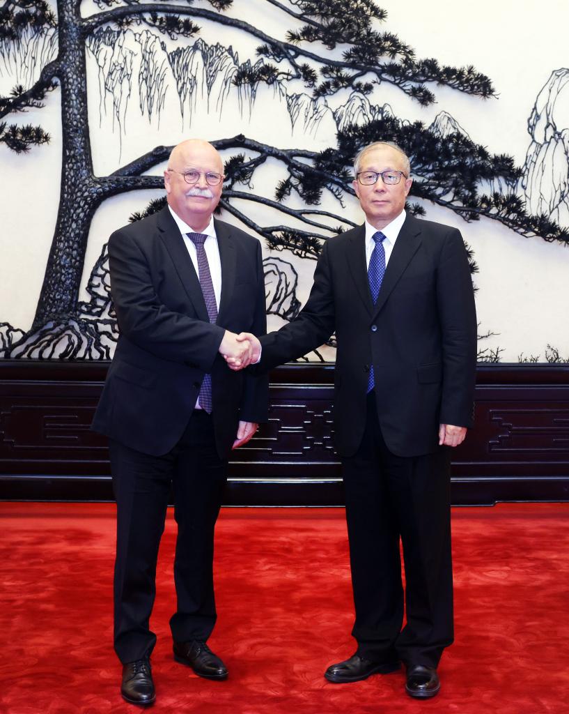 Li Hongzhong, a member of the Political Bureau of the Communist Party of China Central Committee and vice chairman of the National People’s Congress Standing Committee, meets with a delegation from the France-China Friendship Group of the French Senate led by Claude Raynal, the group’s honorary president, in Beijing, capital of China, Sept. 26, 2025. (Xinhua/Liu Weibing)