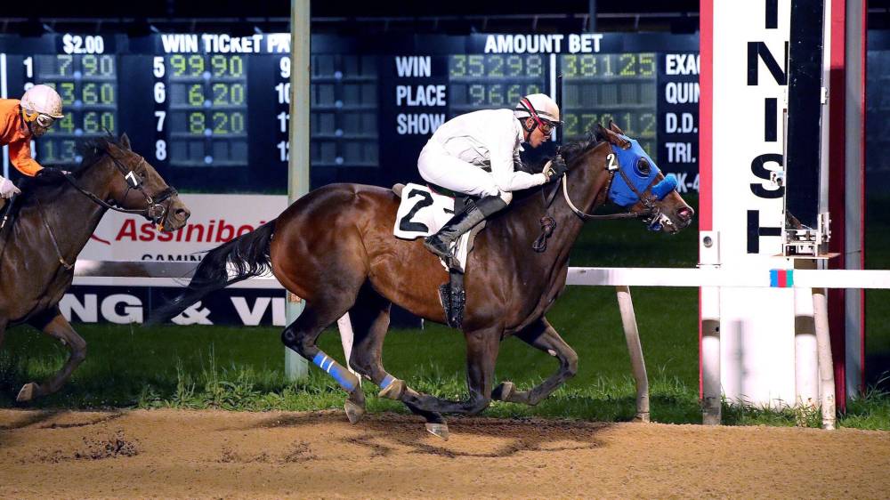 Trained by talented young trainer Mike Taphorn, who recently won the $50,000 Manitoba Matron with Burrow Down, Calming Force had run four times before Wednesday, and had never really run a bad race. He’d won his previous race with Wednesday night’s jockey Ronald Ali with a long determined rally, signaling further improvement to come. He paid $25.60 to win.