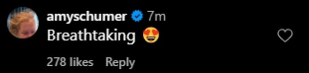 Camila Cabello penned, ‘love looks good on you,’ while Amy Schumer added, ‘Breathtaking,’ followed by a heart-eyed emoji.