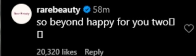 Rare Beauty – which was launched by Gomez back in 2020 – also shared, ‘So beyond happy for you two.’