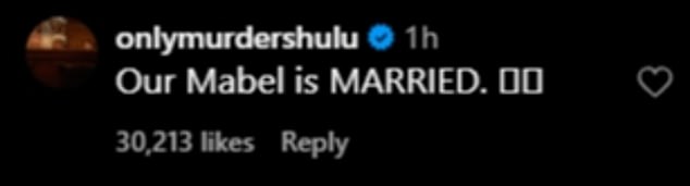 ‘Our Mabel is MARRIED,’ the official account for the series Only Murders In The Building stated, referencing to Gomez’s character in the hit show.