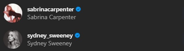 Sweeney and Carpenter were quick to press the like button on the Instagram carousel – with other stars sending congratulatory messages in the comment section.