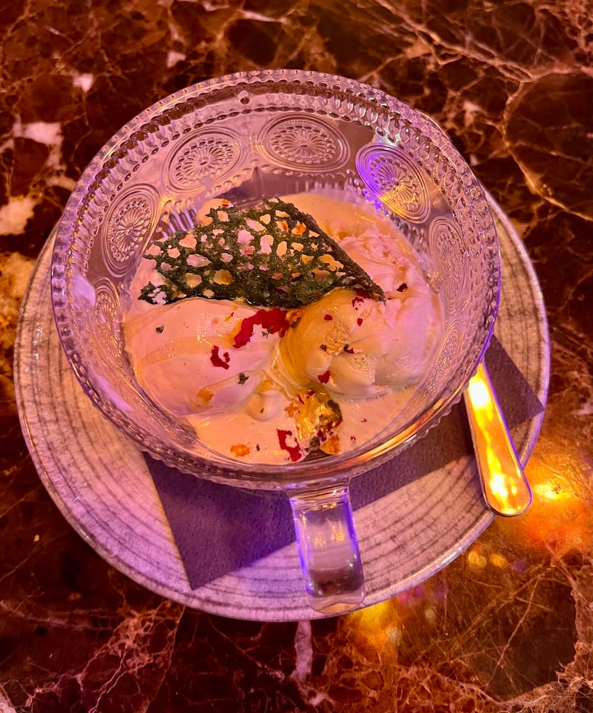 And that Butter Dal! Made with whole black lentils, cooked overnight and finished with churned butter and cream – it’s the kind of dish that converts dal sceptics into devoted fans. Our meal concluded perfectly with shared pistachio ice cream that provided the ideal sweet finale.
