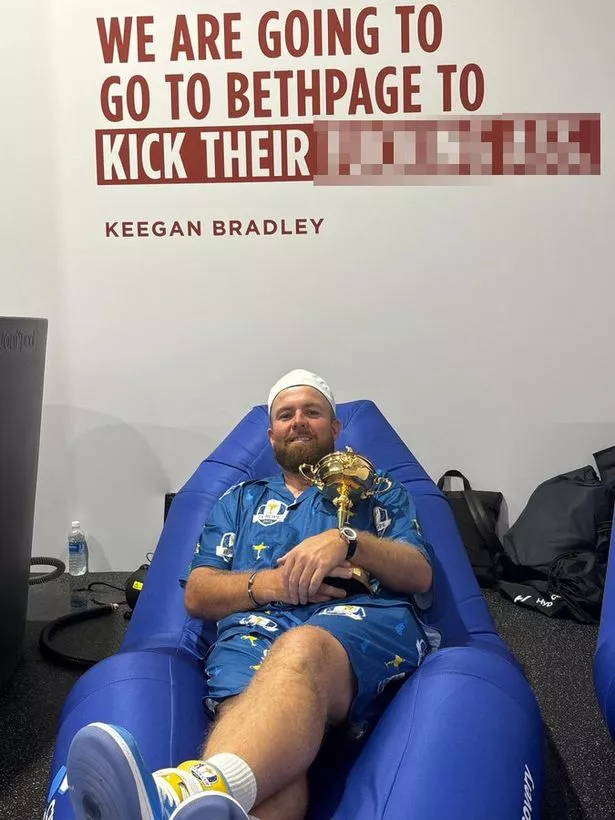 The Irishman posted a photo of himself lying back holding the Ryder Cup trophy while wearing a full Team Europe blue outfit, complete with branded trainers, along with the caption: “Life long dream today”. It was the background that made the shot, though, with a quote from American captain Keegan Bradley on the wall behind reading: “We are going to go to Bethpage to kick their f***ing ass.”