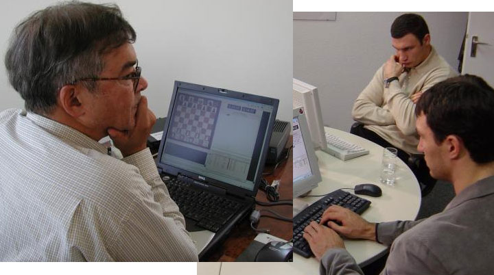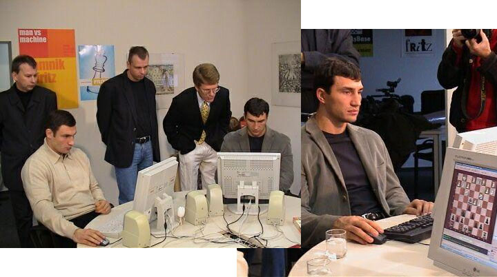 The two even supported Vladimir Kramnik in his famous match against Deep Fritz. Above you see them in the ChessBase office in Hamburg, analysing and chatting with Frederic Friedel, who was in Bahrain, reporting on the match. Here’s the report we filed at the time, and here links to a couple of our Klitschko stories: