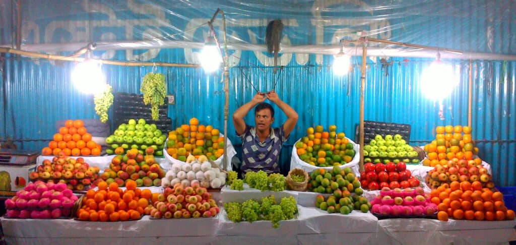 Fruit stand in Dhaka, Bangladesh, 2013. Credit: Hasan Iqbal/Wikimedia Commons