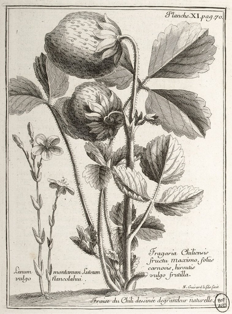 Engraving of the South American strawberry imported by Amédée-François Frezier, from his Relation du voyage de la mer du Sud aux côtes du Chily et du Perou, 1716. Credit: Bibliothèque nationale de France