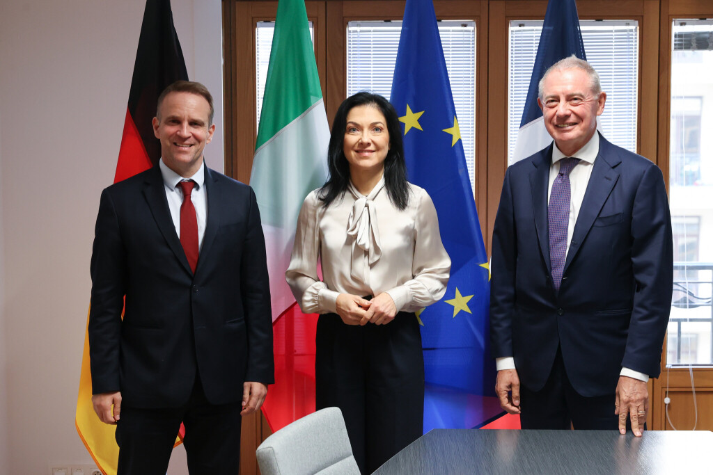 The big three member states are exerting pressure. The French Industry Minister Marc Ferracci, the German Economics Minister Katherina Reiche and the Italian Minister for Enterprise Adolfo Urso meet at the Competitiveness Council in Brussels. (EU-Rat)