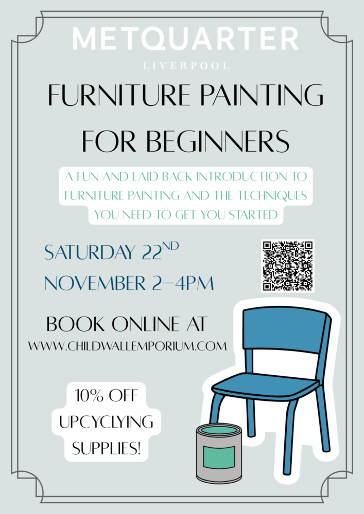 Taking place on Saturday 22nd November, guests are invited to come along to Childwall Emporium’s furniture painting class to learn how to upcycle their own piece of furniture and give pre-loved pieces a new lease of life. Learn how to prep your furniture, what paint can and should be used, how to use effective brush strokes for certain effects, what to use to finish your furniture and how to use waxes and lacquer.