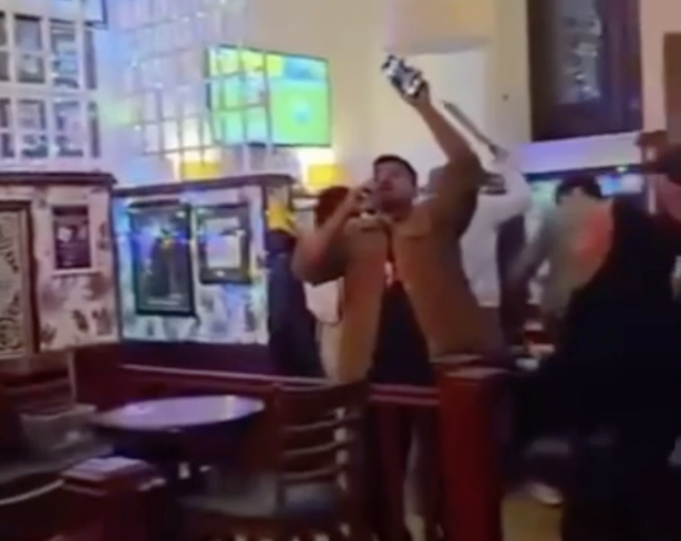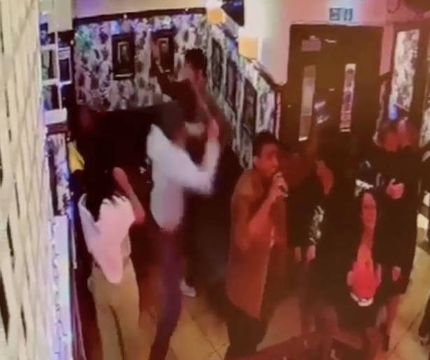 The attacker, who was wearing a hat and a grey hoodie, was captured on CCTV entering the boozer and pushing through pub goers singing karaoke.