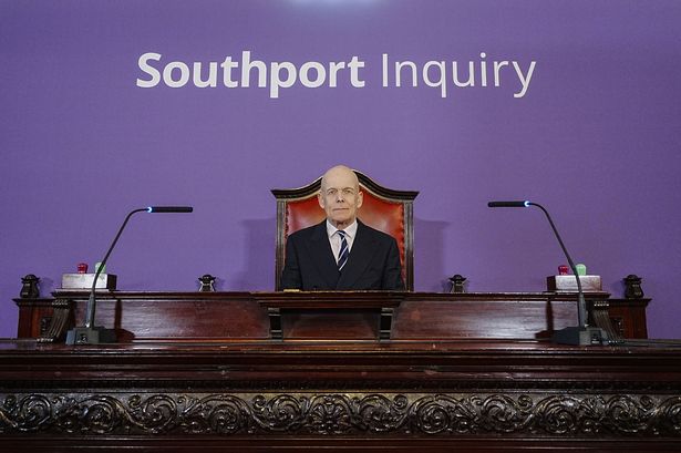 Chair Sir Adrian Fulford sitting inside the hearing room at Liverpool Town Hall(Image: PA)