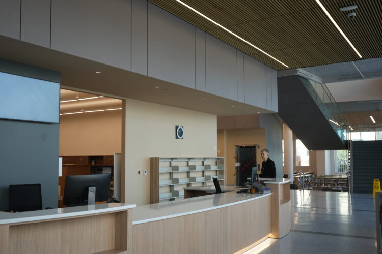 The circulation desk at the New Hanover County’s new main library branch. (Port City Daily/Brenna Flanagan)