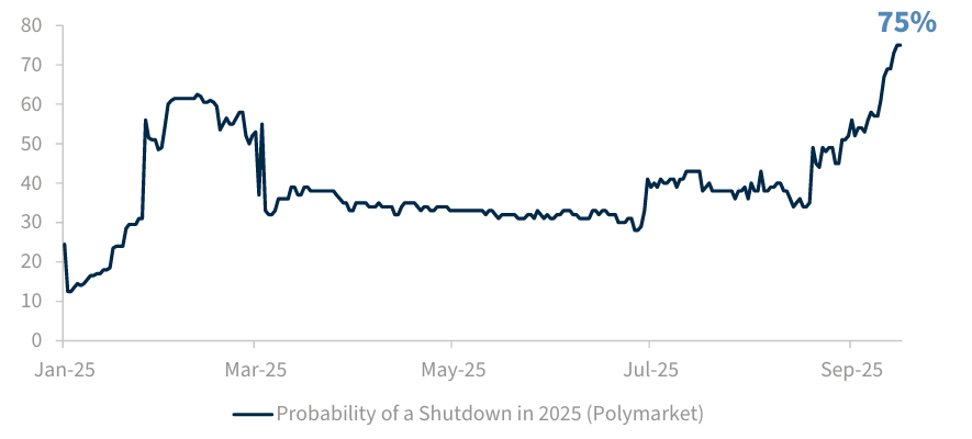 First, that shutdowns are not uncommon; and second, historically, Treasury bonds have served as a safe-haven asset during these periods—though it will be interesting to see if that remains the case given the recent challenges observed.