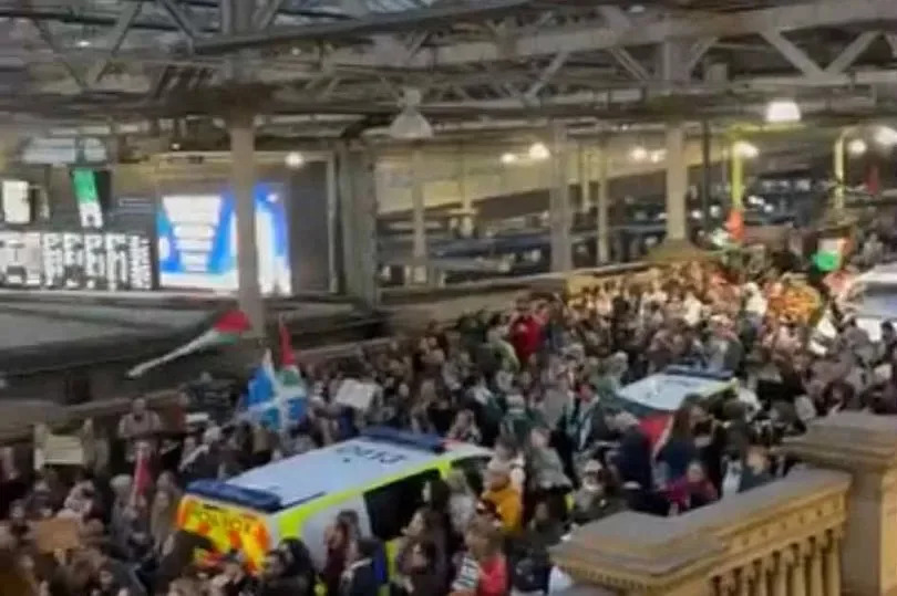 Video footage seen by Edinburgh Live showed a mass protest taking place in the station at around 6.40pm on Thursday, October 2, with crowds seen holding Palestinian flags.