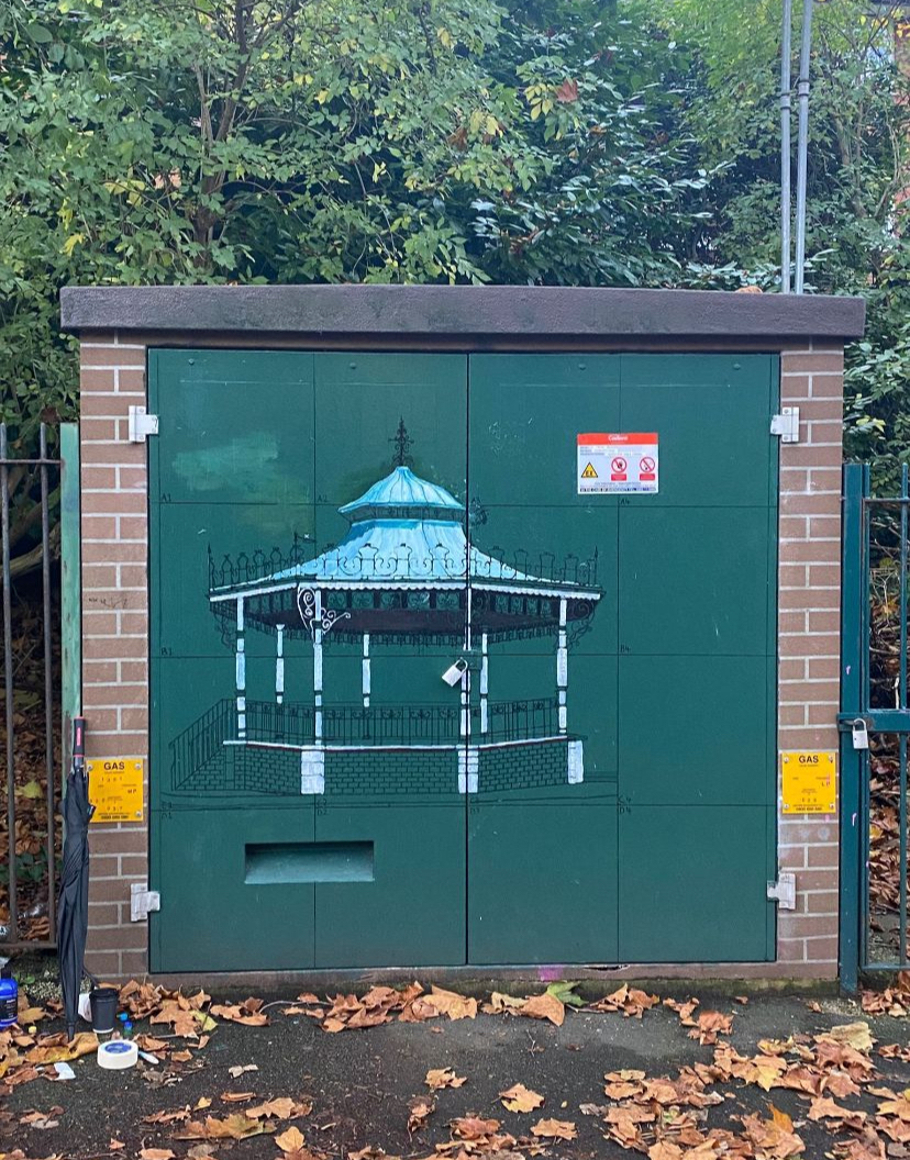 But now artist Sarah Coates has turned an eyesore into an intricate piece of art depicting the park’s Grade II listed Victorian bandstand.