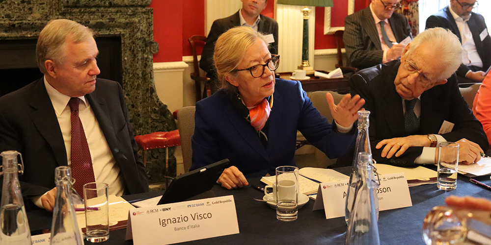 L-R: Ignazio Visco, Anne Simpson, Mario Monti