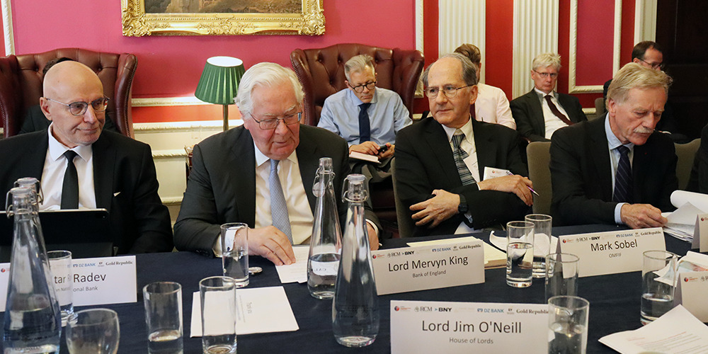 L-R: Dimitar Radev, Lord Mervyn King, Mark Sobel, Yves Mersch