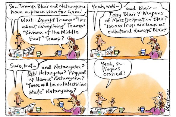 The US has repeatedly given Israel military and diplomatic cover, allowed repeated violations of ceasefires, and not restrained Israel’s regional escalations (“Netanyahu backs US plan to end war”, September 30). It references Palestinian “aspirations” but commits to nothing concrete on sovereignty. Governing decisions will be dictated by outside actors, with little input from Palestinians. The promise of amnesty for surrendering Hamas members and safe passage abroad is unrealistic. There is no clarity regarding accountability, actual security or political inclusion. Palestine has suffered nearly 80 years of brutal occupation and repression. No one in their right mind believes Israel or the US have the interests of whatever is left of Gaza at heart. Shayne Chester, Waterloo
