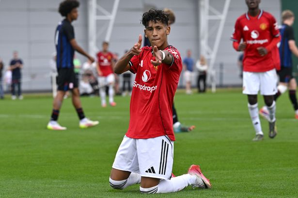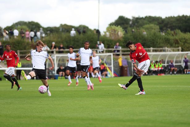 JJ Gabriel is one of the most exciting young talents to ever come through Man United’s prestigious academy.JJ Gabriel celebrates scoring at Carrington.(Image: Manchester United FC via Getty Images)