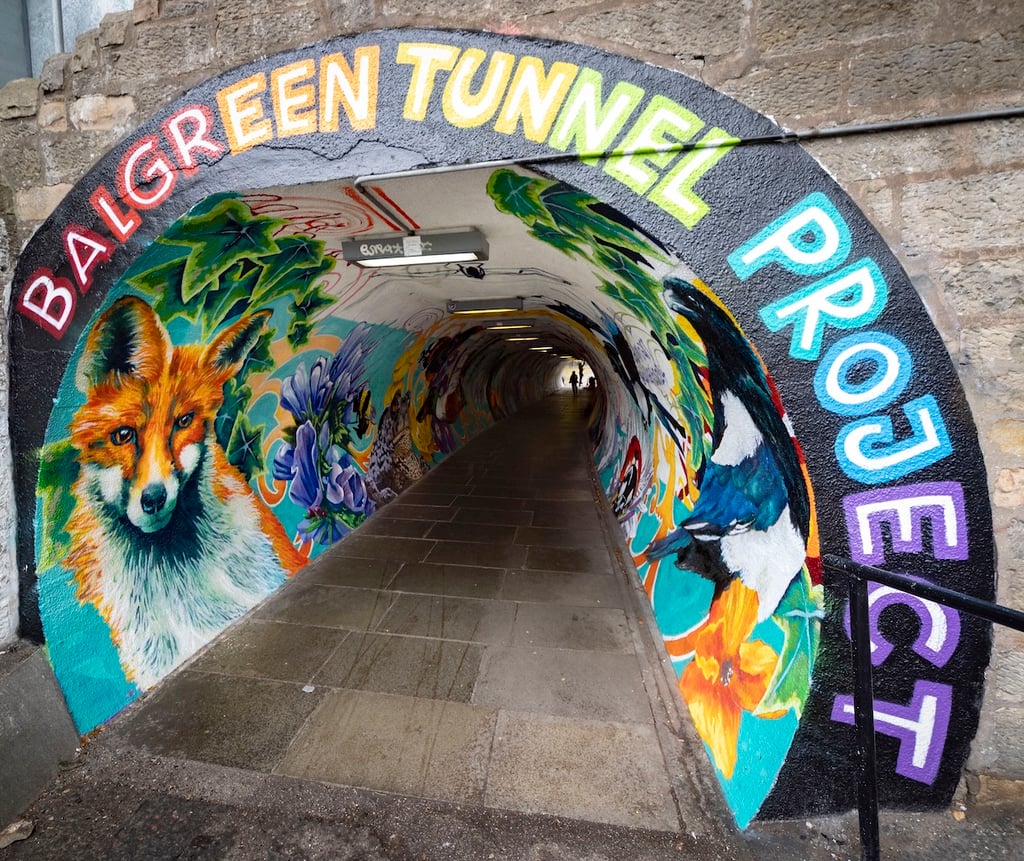 The 46 metres long tunnel runs under the rail and tram tracks crossing Balgreen Road and is on the way to Saughton Park but the space has been blighted by graffiti tags for years.