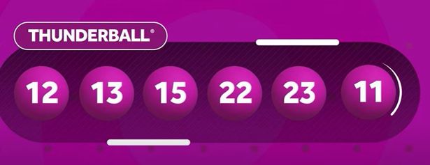 Winning Thunderball numbers: 12, 13, 15, 22, 23. Thunderball: 11
