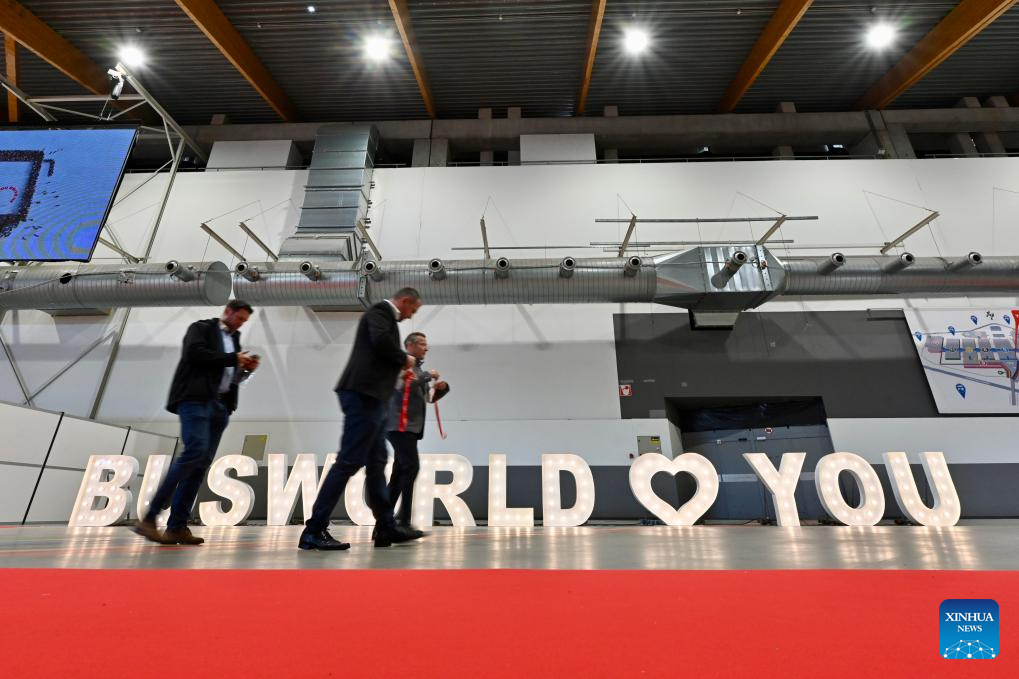 This photo taken on Oct. 4, 2025 shows a view of Busworld Europe in Brussels, Belgium. The 27th edition of Busworld Europe is being held at Brussels Expo, Belgium, from Oct. 4 to 9, 2025. As the world’s leading biennial trade fair for the coach and bus industry, Busworld welcomes exhibitors and professionals from around the globe to showcase the latest vehicles, technologies, and innovations. (Xinhua/Lyu You)