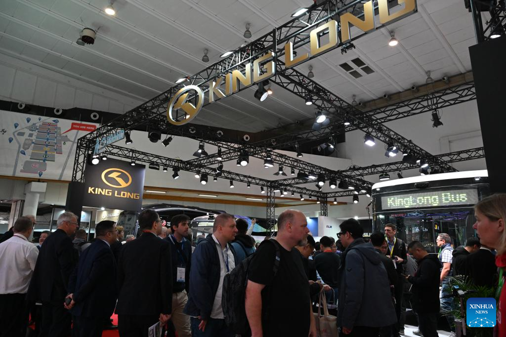 Visitors walk past the King Long booth during Busworld Europe in Brussels, Belgium, on Oct. 4, 2025. The 27th edition of Busworld Europe is being held at Brussels Expo, Belgium, from Oct. 4 to 9, 2025. As the world’s leading biennial trade fair for the coach and bus industry, Busworld welcomes exhibitors and professionals from around the globe to showcase the latest vehicles, technologies, and innovations. (Xinhua/Lyu You)