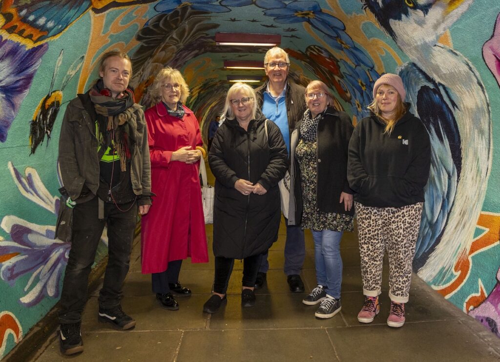 Unveiling the commemorative plaque at the Balgreen Tunnel Community Mural 3 October PHOTO Alan Simpson