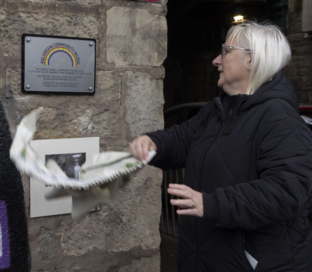 Lesley Hinds former Lord Provost at the unveiling of the plaque for the Balgreen Tunnel Community Mural project. PHOTO Alan Simpson