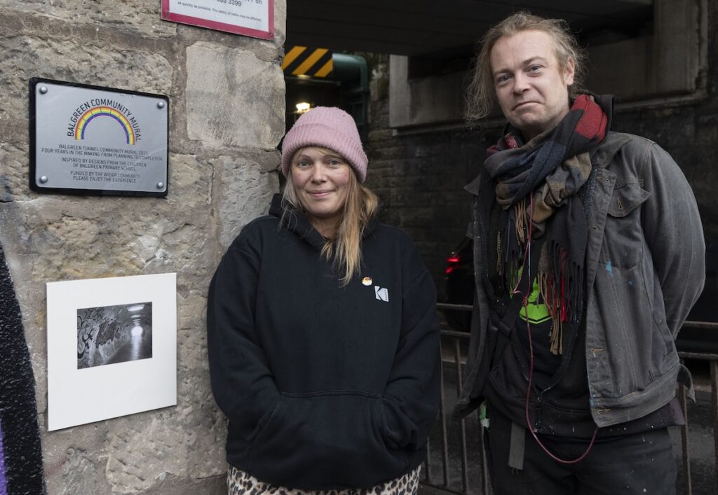 Calum Carr and Dull artist at the unveiling of the plaque for the Balgreen Tunnel Community Mural project. PHOTO Alan Simpson