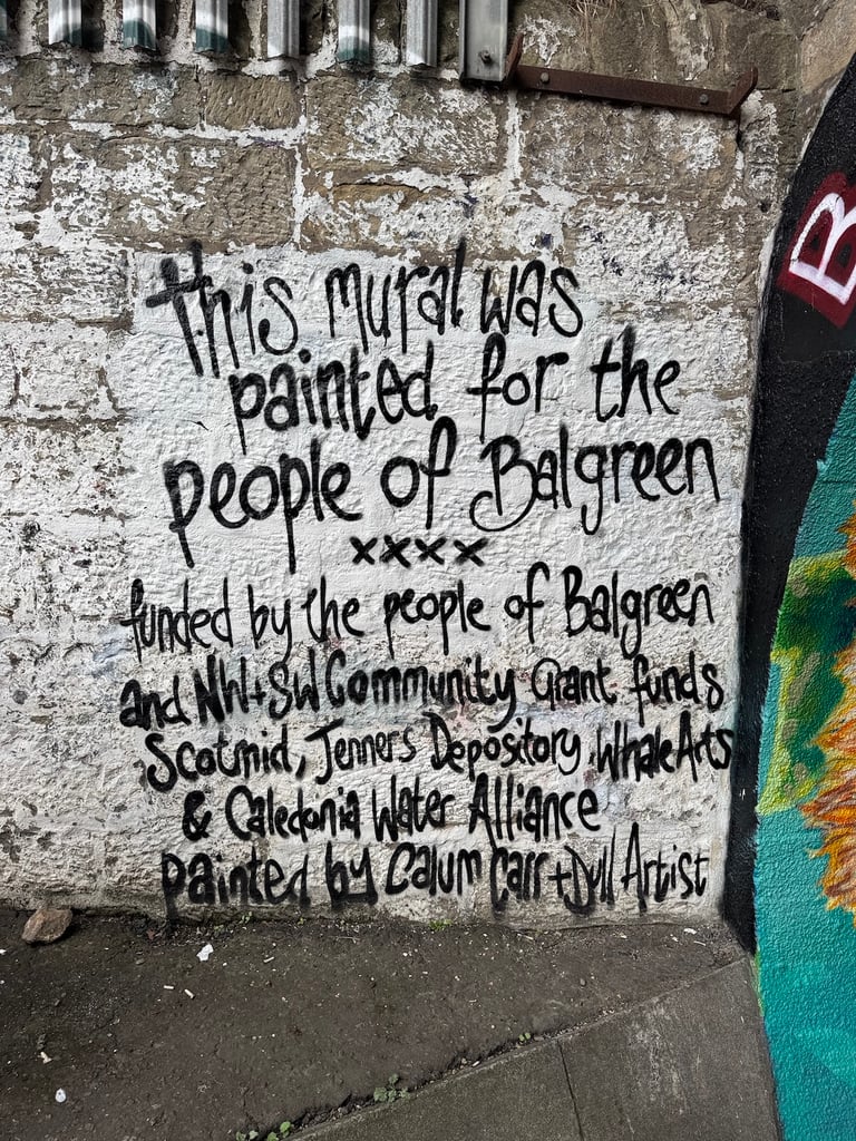 More than 200 people have contributed over £5000 towards the project, which has involved professional street artists and ideas and inspiration from children at nearby Balgreen Primary School.