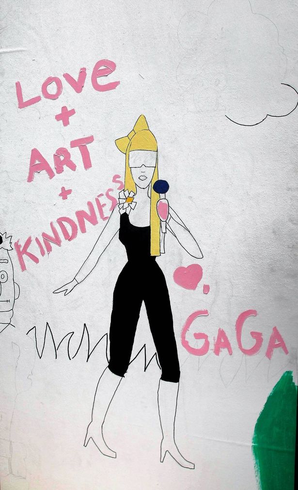As she arrived, volunteers were open-mouthed in shock. She was led to a mural that was being created in her image, and I watched as she took a pot of pink paint and daubed a message to her fans.