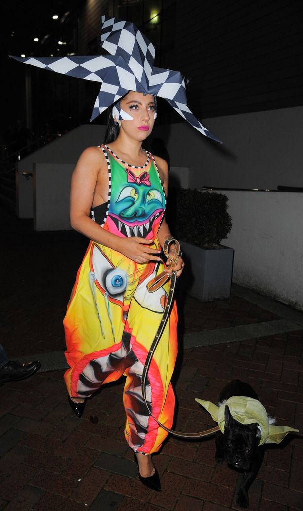 For who can forget the jester ensemble she wore to walk her dog outside The Lowry Hotel.