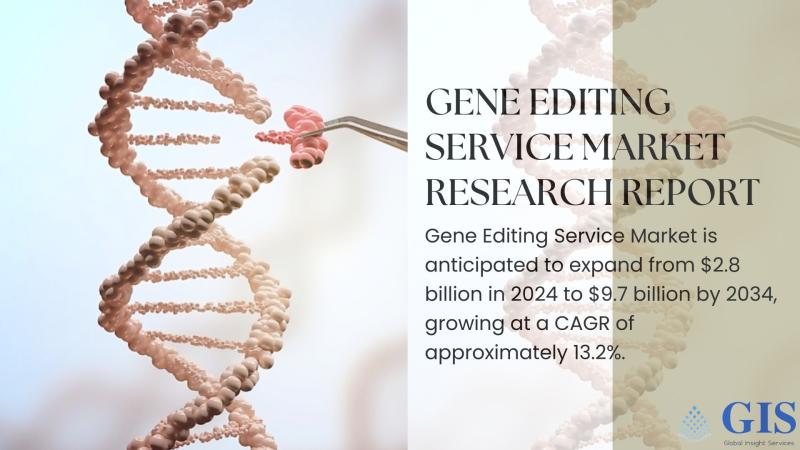 The Gene Editing Service Market is projected to grow from $2.8 billion in 2024 to $9.7 billion by 2034, reflecting a robust CAGR of approximately 13.2%. The market’s expansion is fueled by the rising adoption of CRISPR technology, which offers cost-effective and precise genetic modification capabilities. Biomedical applications dominate the demand landscape, particularly gene therapy and personalized medicine, while agricultural applications are rapidly gaining traction due to their role in enhancing crop resilience. Custom gene synthesis services are the leading service type, catering to specialized research needs, followed by contract research services that provide cost and time efficiency. The increasing collaboration between academic institutions and biotechnology firms further supports market growth, strengthening the demand for comprehensive gene editing services globally.