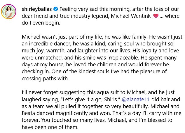 ‘While our world is dimmer without him, Michael’s spirit, his laughter, and his profound passion for dance will live on in our hearts forever.