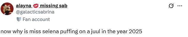 Someone else claimed, ‘Now why is Miss Selena puffing on a Juul in the year 2025.’